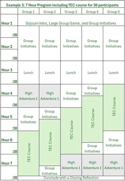 Hour 5 is often upgraded to be a third High Adventure Activity